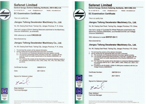 泰隆減速機(jī)認(rèn)證證書(shū)